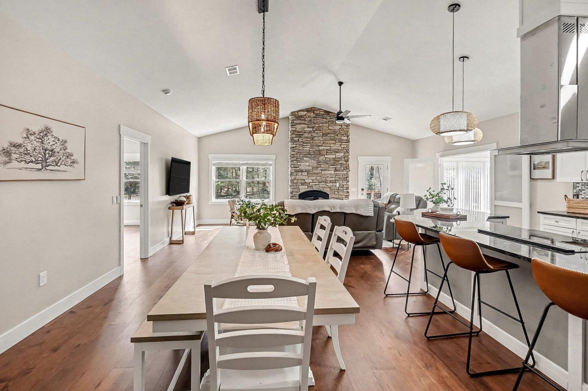 Tucked away on a peaceful 1.6-acre wooded lot, this stunning custom home, built in 2023, offers 5 bedrooms, 3 bathrooms, and 1,500 feet of private association access to Lake Michigan?an opportunity you wont want to miss. Step into a warm and inviting foyer that opens to a spacious, open-concept living and dining area. The kitchen features soaring cathedral ceilings, a center island, stainless steel appliances, and plenty of room to entertain. A cozy sunroom just off the living area includes a hot tub and leads to a beautiful deck?ideal for relaxing or hosting guests. Dont miss this rare chance to own a secluded, lake-access gem.