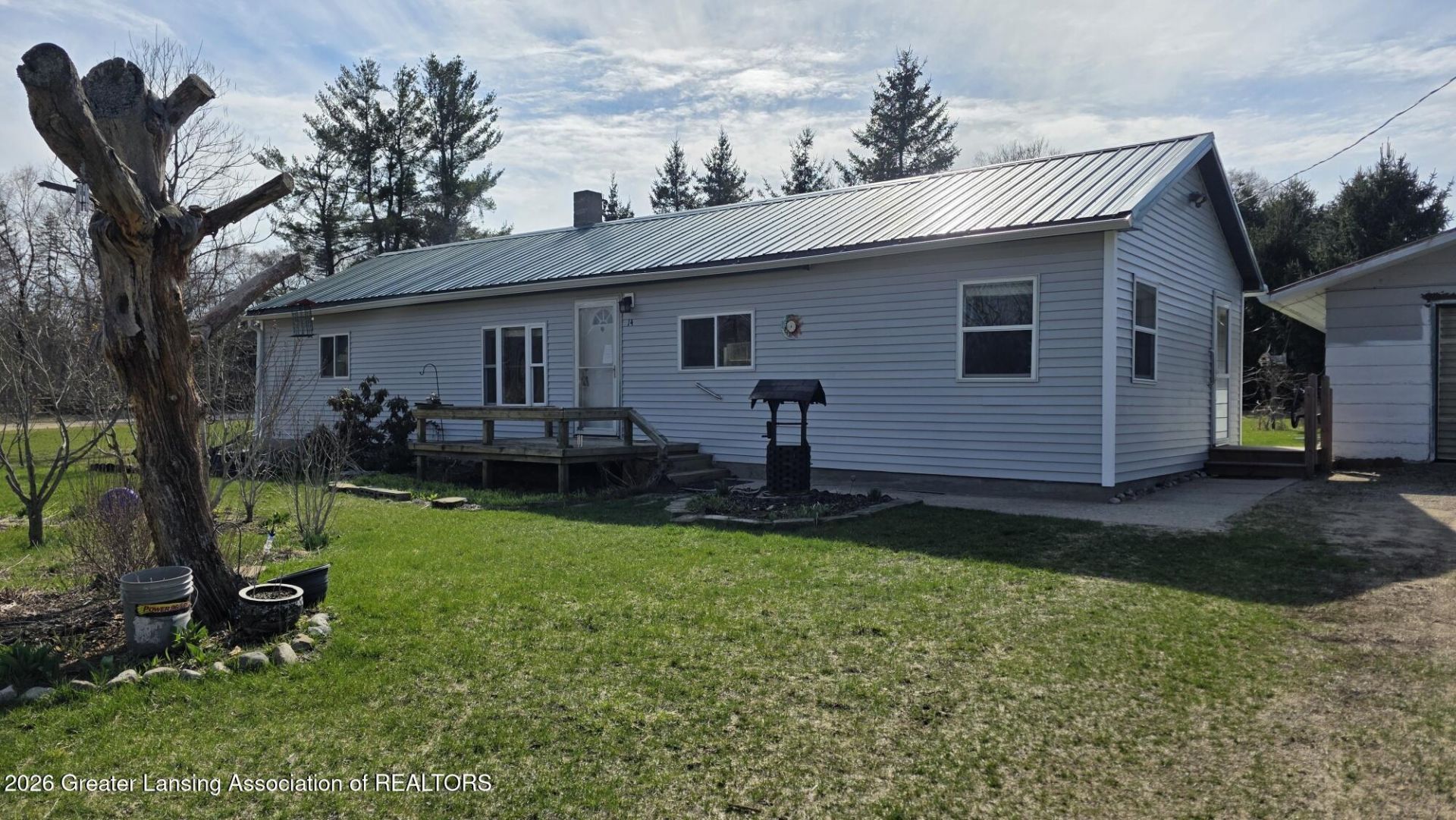 Welcome to 14 S 5th St, Morley MI! This updated and Oh So Loved ranch home has been in the family for over 50 years. Nice open floor plan with tons of windows offering lots of natural light. Home is located on nice .68 acre corner lot fully landscaped and plenty of mature trees. There are multiple gardens full of mature, unique perennials. There is lots of wildlife and it is surrounded by wooded acres. Home has newer kitchen, metal roof, windows, doors, flooring, bathroom, water heater (2026), furnace and more. Nothing to do but move in. There are 2 huge bedrooms, one with a walk-in closet. Main floor laundry complete with washer/dryer. Nice big mud room with double coat closet. Big kitchen has tons of cabinets, 2 pantries, lots of counter space, all appliances and a rolling island... that stays. Septic is 800 gallons and was just pumped in 2025. The best water in town, it filters from the local springs. Enjoy the huge 30x25 detached, heated garage. Garage has a nice wood stove, overhead storage, workshop area and tons of storage. There is also a nice greenhouse out back for gardening. The Altona Dam is just blocks away with the best fishing and tubing around. Minutes from Canadian Lakes and Lakeview. Must see!!!!!!