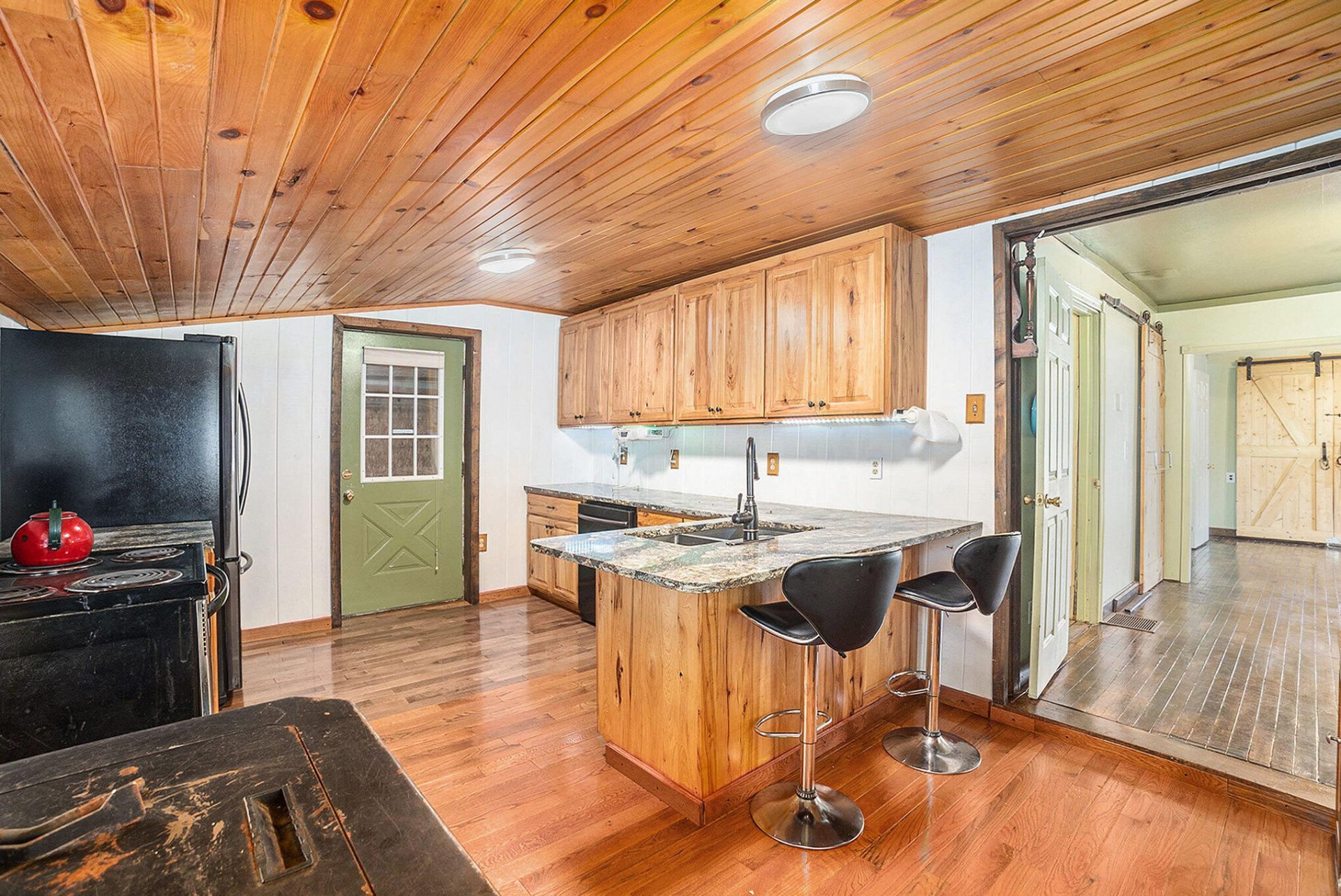 This move in ready home offers comfort and potential. The interior features a welcoming living space, two bedrooms and a functional layout. A framed pole barn is on the property, with supplies on site for you to complete the finish work. All of this with immediate possession.