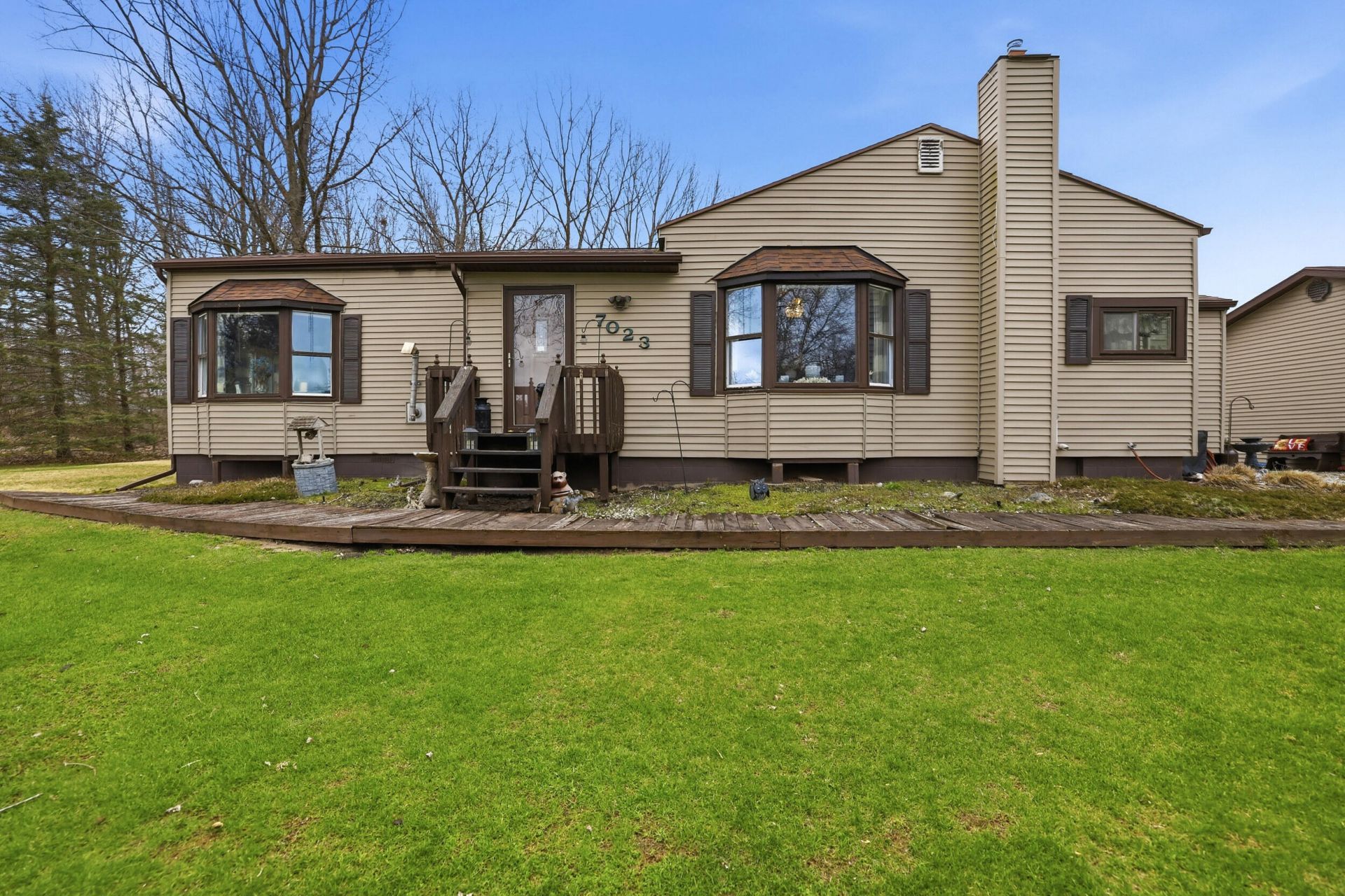Space, updates, and a peaceful setting--this beautifully maintained home on just over an acre has it all. Inside, youll find real hardwood floors, a spacious layout filled with natural light, and an updated kitchen featuring quartz countertops and ample cabinet space.The walkout basement provides additional living space with direct access to the backyard and has previously been used as a bedroom, offering great flexibility for guests, a home office, or extra living space.Step outside to enjoy the large deck overlooking a beautifully landscaped yard with mature trees. An oversized 2.5-stall garage offers plenty of room for vehicles, storage, or a workshop.A great blend of move-in ready updates and peaceful country living.